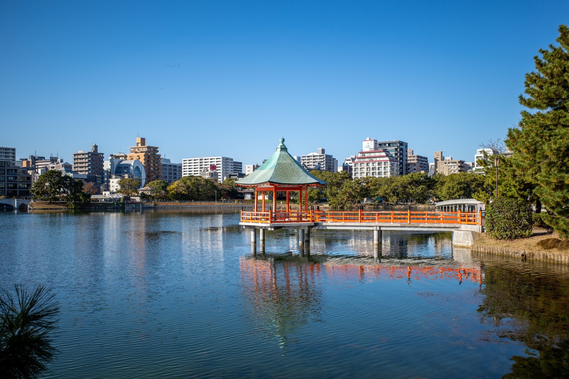 移動の途中で 大濠公園 のそばを通り、