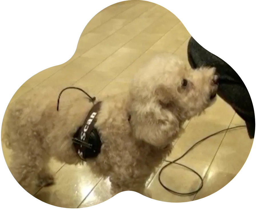 - ウチの子は高齢なので、立ったままでの検査や麻酔をして行うレントゲンなどは避けていますが、Dog-Scan®なら、ただボディフォンを付けるだけなので、体への負担がほとんどなく寝てしまうほどのリラックスした状態でした。